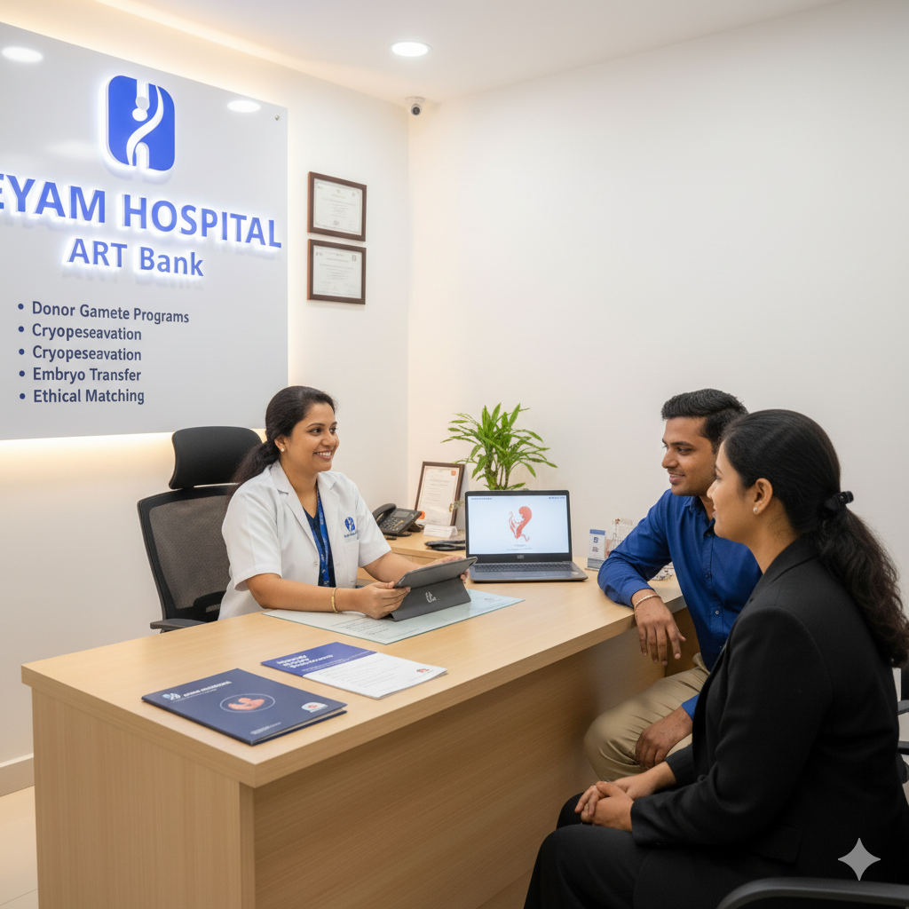 Jeyam Hospital operates a fully Govt.-approved ART Bank, offering safe and confidential services for gamete and embryo storage. We adhere to ICMR guidelines to ensure ethical practices and complete patient confidentiality.